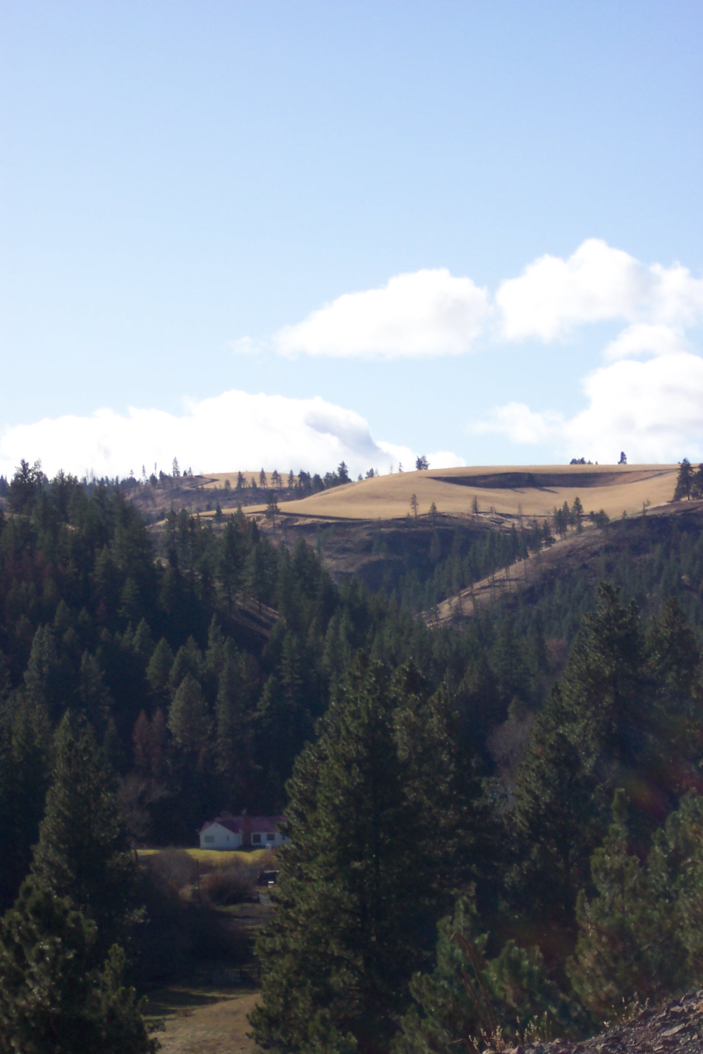 I found a spot beside the road where I had a great view of the windmills. Here I did the ceremony by myself, as I had been unable to find one soul that could come with me to participate in the ceremony. Down over the ridge was the burned out valley, totally unseen from here. Then I took a drive through some other areas.. kinda like the scenic route back to Lewiston. |